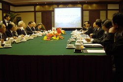中国石化産業首脳との交流を深めようと、石化協の蛭田史郎会長(旭化成社長)、宮脇一郎副会長(住友化学専務)ら首脳11氏は4日、中国浙江省余姚(ユウヤオ)市を訪ね、中国石油・化学工業協会(CPCIA)の李勇武会長ら首脳と会談した。 日中の石化協会代表による交流は03年11月4日、来日した譚竹州会長らを迎えて東京で第1回交流会議を開催して以来今回が2回目。中国側からは李会長をはじめ潘徳潤、楊偉才両副会長ほか10氏が出席し、石化産業の現状や双方にとって関心の高い問題について活発な意見交換を行なった。 会議では、両会長の挨拶のあと、日本側から宮脇副会長が「日本の石化産業の現状と海外展開の方向」、また吉田寿夫・丸善石油化学専務が「日本の石油化学における保安対策」についてプレゼンテーションを行なった。 このあと意見交換に入ったが、中国側はとくにわが国の省エネ、環境、保安対策と技術に高い関心を示し、今後とも引き続き情報交換を密接に行ないたいとの強い要望が出されたという。 なお、日本の石化協首脳一行は、この日朝は余姚で開催された第7回中国プラスチック博覧会の開会式に出席し、会場内を見学した。 ニュースリリース参照 http://www.chem-t.com/fax/images/tmp_file1_1131348442.tif |