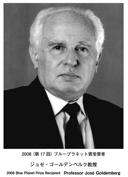 ■ クロード・ロリウス博士(Dr.Claude Lorius) 1950年代半ばから南極の氷河の研究を行い、各国専門家と共同で氷床コアを掘削し、それらを詳細に分析し、過去40万年前の地球の気候変動を明らかにした。また、地球上で最も寒いボストーク基地で掘削した氷床コアの分析から、氷期、間氷期間の気候変動と大気中の二酸化炭素・メタンとの相関関係等を見出し、「現在の二酸化炭素の濃度が過去にない高いレベルにある」ことを指摘、地球温暖化に警鐘を鳴らした。 ◇1932年 フランス・ブザンソン生まれ。 ◇1957年 国際地球観測年の南極探検隊に参加 ◇1986年〜90年 国際学術連合会議(ICSU)南極研究科学委員会(SCAR)会長 ◇1994年〜 フランス科学アカデミー会員 ◇1998年〜 フランス国立科学研究センター名誉主任研究員 ■ジョゼ・ゴールデンベルク教授(Prof.Jose Goldemberg) 1960年代末からサンパウロ大学でエネルギー問題の研究を行い、73年の石油危機直後にはバイオエタノール採択に主要な役割を果たすなど、国のエネルギー政策の策定、推進に貢献した。途上国が発展していく上で必要なこととして“技術の馬とび”の概念を提唱してきたことでも知られる。また、国内だけでなく、国際的にも、エネルギー、地球温暖化、森林破壊などの環境問題で強いリーダーシップを発揮し、貢献してきた。 ◇1928年 ブラジル生まれ ◇1967年〜 サンパウロ大学教授 ◇1986〜90年 サンパウロ大学学長 ◇1990〜91年 ブラジル国科学技術長官 ◇2002〜06年 サンパウロ州環境長官 |