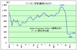 新日本石油(西尾進路社長)は2日、2月のベンゼンのアジア地域における契約ものの価格(ACP)が大手需要家との交渉の結果、360$/t に決まったと発表した。 生産調整が進むなか、一部誘導品メーカーに稼動を引き上げる動きが見られ、1月に入りアジアスポット市況は反転し、2月のACPは前月比 +65$/t となった。 国内価格換算想定値は37.4円/kgとなる。 ニュースリリース参照 http://www.chem-t.com/fax/images/tmp_file1_1233560734.pdf |