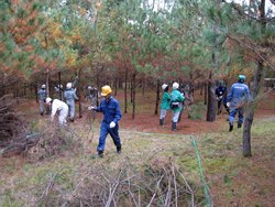 ジャパンエナジーは9日、CSR活動の一環として、新潟県胎内市に工場のあるジャパンエナジー石油開発中条油業所(永井省悟所長)の社員や家族らが総出で7日と8日の2日間、森林保全のためのボランティア活動を行ったと発表した。 油業所のある村松浜海岸地域は、冬になると日本海から強い風雪が吹きつける。だが砂防林となる松林が松くい虫の被害にあい、1990年代初には約6000本あった赤松が、90年代後半には半分以下に激減した。 このため中条油業所では1998年から事業所構内および周辺地域の松林保全活動に取組んできた。今年のボランティアには社員や家族約40人が参加、赤松林の草取りや間伐、幼木の植林などに汗を流した。 |