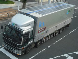 株式会社アイ・シー・エル、三菱化学、日本フルハーフの3社は26日、太陽光発電を利用したトラック用アイドリングストップクーラーシステム「i-Coolソーラー」を共同開発したと発表した。 アイ・シー・エルは今年5月、走行中に充電した車載バッテリーにより、エンジンを止めた状態でも運転室内の冷房ができるトラック用アイドリングストップクーラー「i-Cool」を発売した。満充電で夏季昼間に5〜7時間連続して冷房できる。 この「i-Cool」に、三菱化学の太陽電池パネルを組み合わせ、日本フルハーフの専用架台でトラック荷台に実装すれば、燃費削減や騒音低減に以下の通り大きな効果が得られる。(10トントラックの場合) (1)停車中に、アイドリングをせず「i-Coolソーラー」で冷房することで、停車時間1時間当たり約1.8リットルの軽油消費を削減できる。 (2)走行中に、既設エアコンによる冷房と「i-Coolソーラー」冷房を併用することで、約1パーセントの軽油消費を削減できる。 (3)上記2つを合わせて、1台当たり年間約1,500リットルの軽油消費を削減できる。 (4)これは1台当たり年間約3,300キログラムのCO2排出削減に相当する。日本国内のすべての10トンバントラックが「i-Coolソーラー」を利用すれば、年間約50万トンのCO2排出を削減できることになる。 (5)バッテリーを常時満充電に近い状態に維持できるため、ウィング開閉やテールゲート昇降等、バッテリー電力による荷役装置の稼動を安定的に行える。またバッテリーの過放電を低減し、バッテリーを長寿命化できる。 【株式会社アイ・シー・エルの会社概況】 (1)社長 宮武 良行 (2)本社 東京都品川区南大井三丁目26番7号 (3)設立 1958年7月28日 (4)資本金 6億8千万円(いすゞ自動車販売100% 出資) (5)連結売上高 98億円(2010年3月期) (6)事業内容 自動車用品開発及び販売、補修部品販売 (7)連結従業員数 90名(2010年3月期) 【日本フルハーフ株式会社の会社概況 (1)社長 比企 能信 (2)本社 神奈川県厚木市上依知上ノ原3034 (3)設立 1963年10月19日 (4)資本金 10億250万円 (日本軽金属66% : いすゞ自動車34%) (5)連結売上高 356億円 (2010年3月期) (6)事業内容 各種バンボデー、各種トレーラ、各種コンテナ等の製造・販売 (7)連結従業員数 1,050名 (2010年3月期) ■注: 今回の「i-Coolソーラー」実証実験には、試作車(2台)の各種データの収集・解析に、いすゞ自動車の大型トラック用高度運行情報管理システム“みまもりくん”を活用している。 “みまもりくん”の専用サイトは、http://www.isuzu.co.jp/cv/cost/mimamori/index.html ニュースリリース参照 http://www.chem-t.com/fax/images/tmp_file1_1288069789.pdf |