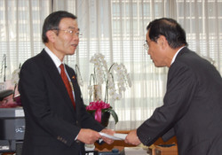 石油化学工業協会の高橋恭平会長(昭和電工社長)は24日、経済産業省に池田元久・経済産業副大臣を訪ね、さきの「原料ナフサの課税絶対反対総決起大会」で採択した宣言文を手渡すとともに、「原料ナフサ非課税の恒久化」を要望した。 これに対して池田副大臣は、「原料に課税するなど論外だ。私は税調でもそれを明確に言ってきた」としたうえで、「法人税の減税は本来、政策効果を狙ったもので、その見返りに別の税をというのは論理的にもおかしい。原料非課税の立場は尊重しなければならない」と、石化業界の立場に強い理解を示した。 そして「石化業界は堂々と主張してもらえばいい。それより安心して 仕事や操業に専念してほしい」と付け加えた。 会談後、高橋会長は「本則で原料ナフサ非課税を恒久化するということについて理解を得られた。民主党内でもかなり理解は広がってきたと思う」と感想を語った。 |