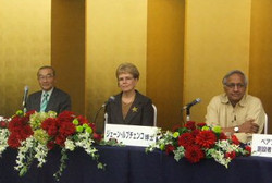 旭硝子財団(理事長・田中鐵二氏)は7日、2011年(第20回)「ブループラネット賞」の受賞者記者会見を行った。 受賞したのは米国のジェーン・ルブチェンコ博士、(商務省次官、米国海洋大気局局長=NOAA)と、途上国農村地域の貧困や生活支援の教育活動を実施している組織であるインドのベアフット・カレッジ。記者会見には、ルブチェンコ博士およびベアフット・カレッジのバンカー・ロイ代表が出席した。 会見でルブチェンコ博士は、「NOAAでは、海洋や海洋資源を管理するとともに、海洋・沿岸生態系に影響を及ぼす活動を規制している」としたうえで、津波の影響で被害を受けた東京電力福島原発事故の対応について、「海洋中の放射能は迅速に希釈された」と指摘し、「日本の機関が実施していること(対応)は、正しいと思っている」と語った。また、科学者の責務について「科学者は、新しい技術を開発するだけでなく、社会に奉仕する義務を負っている。聞く耳を持つことが重要である」と強調した。 一方、ロイ代表は、「科学者は、世界の貧しい人とコミュニケーションをとることが重要である」とし、とくに「双方向での学びがポイント」になると指摘した。 |