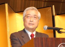 日本化学工業協会、石油化学工業協会など化学関連52団体共催による2012年合同賀詞交換会は5日、都内のホテルに1300人が参加して開かれた。 主催団体を代表して日化協の藤吉建二会長(三井化学会長)が「昨年は日本にとって激動の一年だった。その中でナフサ非課税問題が決着したことが明るい材料になった。今年はまた厳しい円高が続く中、多くの課題に立ち向かっていかないといけない。ことにエネルギー問題では、不公平な負担を負わされないようにしないといけない。将来に向けて大きく転換できるのも化学の力だ」と挨拶した。 続いて来賓の牧野聖修経済産業副大臣が「わが国化学産業は出荷額25兆円、従業員70万人という一大産業であり、高い国際競争力を誇る製品を多数生み出している。ノーベル化学賞受賞者の多さが示すように、日本は化学技術レベルも高い。経産省としても技術開発支援をさらに充実させていく方針だ」と祝辞を述べた。 石化協の高橋恭平会長(昭和電工会長)が乾杯の音頭をとった。グラスを片手に「昨年、ようやく念願だったナフサ非課税恒久化に道筋をつけることができた。当分の間という表現になっているが、霞が関の言葉では無期限という意味なので、どうぞ安心してください」とスピーチし会場を沸かせた。 |