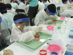 | 「夢・化学-21」委員会(日化協など4団体で構成)は、8月3-4日の両日、東京・千代田区の科学技術館で「夏休み子ども化学実験ショー2013」を開催した。2日間で大人も合わせて約8000人がつめかけ、大賑わいだった。 夏休み中の小学生たちに「化学のフシギ」を体験してもらい、少しでも“化学の好きな子”になってもらおうと毎年企画しているもので今年は19回目。 3日には日化協の高橋恭平会長(昭和電工会長)、日本化学会の玉尾晧平会長も会場に顔を見せた。 高橋会長は各ブースを回りながら「大勢来ているね」と、楽しそうだった。 主要化学メーカー・団体による「実験体験」コーナーは、子どもたちにとっても学校の夏休みの宿題・自由研究にそのまま利用できる。今回は17テーマの化学実験と4つの特別プログラムを準備したが、各ブースとも親子ずれの参加者であふれた。 初参加は東工大の学生サークル(サイエンス・テクノ)。「ぶくぶく入浴剤をつくろう」がテーマでクエン酸や重曹など4種類の白い粉を用意し、子どもたちに「どの粉と粉混ぜたら泡ができるか」と実験で試させた。子どもたちは自分でチャレンジしてつくった入浴剤を、嬉しそうに持ち帰った。 「夏休み化学実験ショー」は子どもから大人まで気軽に“化学の魅力”に触れて楽しむことができるイベントとして、東京都民や周辺住民の間に定着してきた。「これからも“未来の科学者”が一人でも多く出るよう知恵を絞ります」と主催者たちは話している。