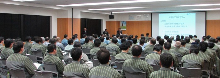 石油化学工業協会はこのほど、三菱化学・鹿島事業所で「第14回 事故事例巡回セミナー」を開催した。「工場の安全確保に必要なものは何か」と、同協会では2009年から年2回のペースで全国のコンビナート各地をたずね、業界の大先輩を招いて、過去の経験談や苦労話を“生の声”で聴く巡回教室を開いてきた。 半田安・元三井化学技術研修センター長が「化学産業100年、事故から何を学んできたか」、清水健康・元旭化成環境安全部担当部長が「化学プラントの安全と現場管理者に求められるもの」と題し、熱のこもった講演を行った。 半田氏は「一時事故は減っていたのに、2000年代に再び増えはじめた。プラント建設時代の経験豊富な世代が定年退職期を迎えたことが原因ともいわれている。近年の重大事故を見ると、過去の事故の繰り返しだ。過去から学ぶことで防ぐことはできたはずだ」と、主な事故例をあげて何が必要かを説いた。 清水氏は「最近、プラント建設、新規運転の機会がなく、現場管理者は経験による技術の習得や勘どころの習得ができなくなっている。これを自覚して常にレベルアップを図り、積極的に危険の芽を摘み取る必要がある」と自身の経験をもとに問題点を指摘し、管理者のあるべき姿について説明した。 会場には周辺企業10社から保安・技術部門の管理職約110人がつめかけ、真剣な表情で聴き入っていた。 ニュースリリース参照 http://www.chem-t.com/fax/images/tmp_file1_1457324331.docx ![]() 熱心に聴き入る受講者たち |