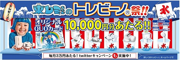 東レは、「東レミ(あずまれみ)ちゃんのトレビーノ祭り!!」を5月下旬より開始した。 家庭用浄水器「トレビーノ」を購入して抽選に応募すると、QUOカードや現金があたるキャンペーン。応募締切は、2019年9月30日。 ニュースリリース参照 https://www.toray.co.jp/news/environment/detail.html?key=4AF796B3C4C39E82492584150026D792 ![]() |